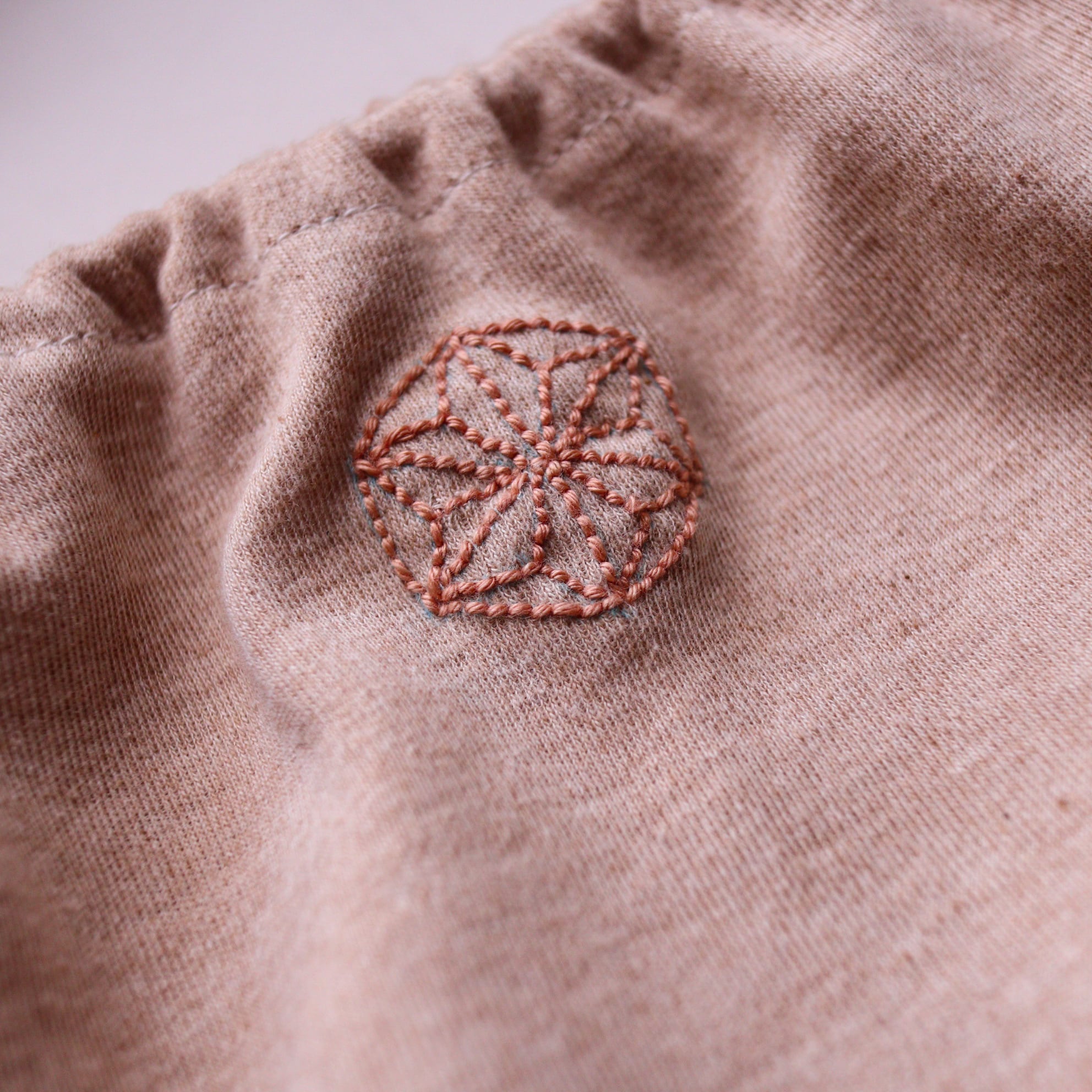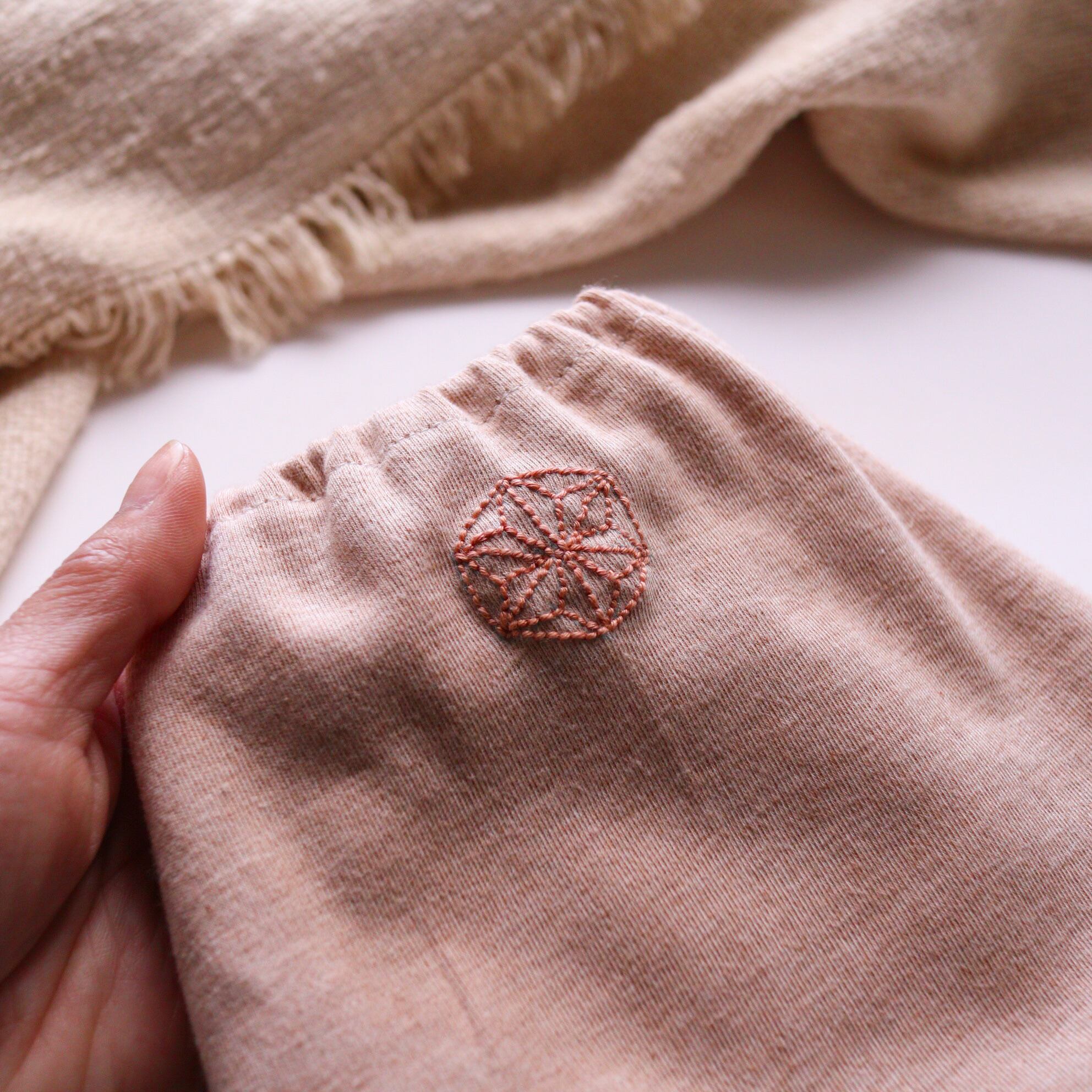 魔除けの 麻の葉模様を 刺繍しました。