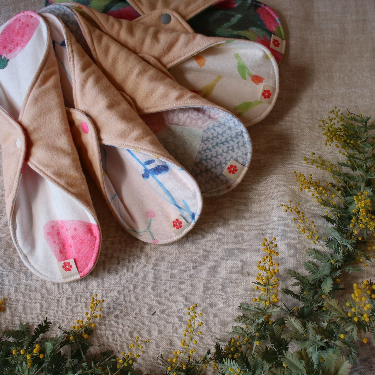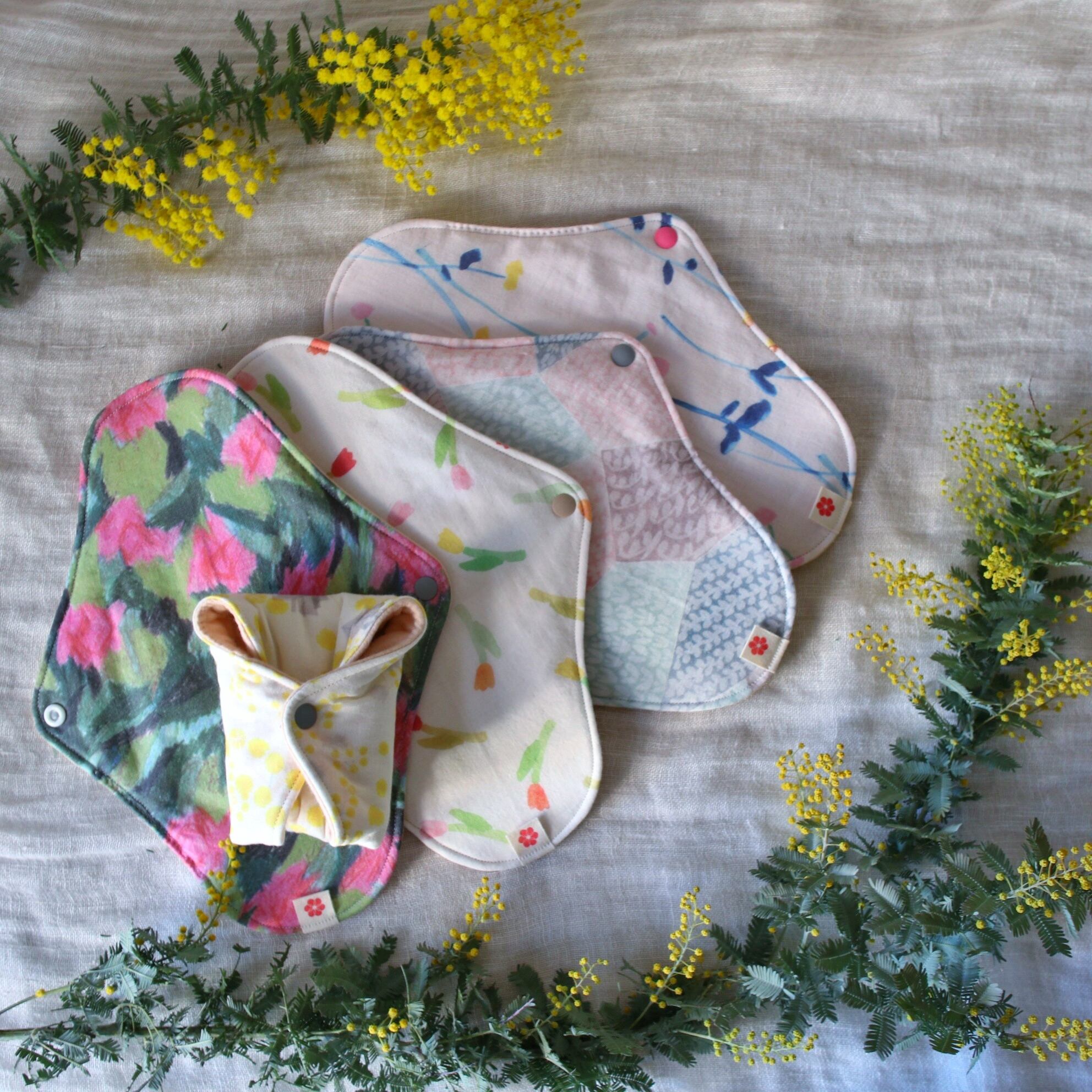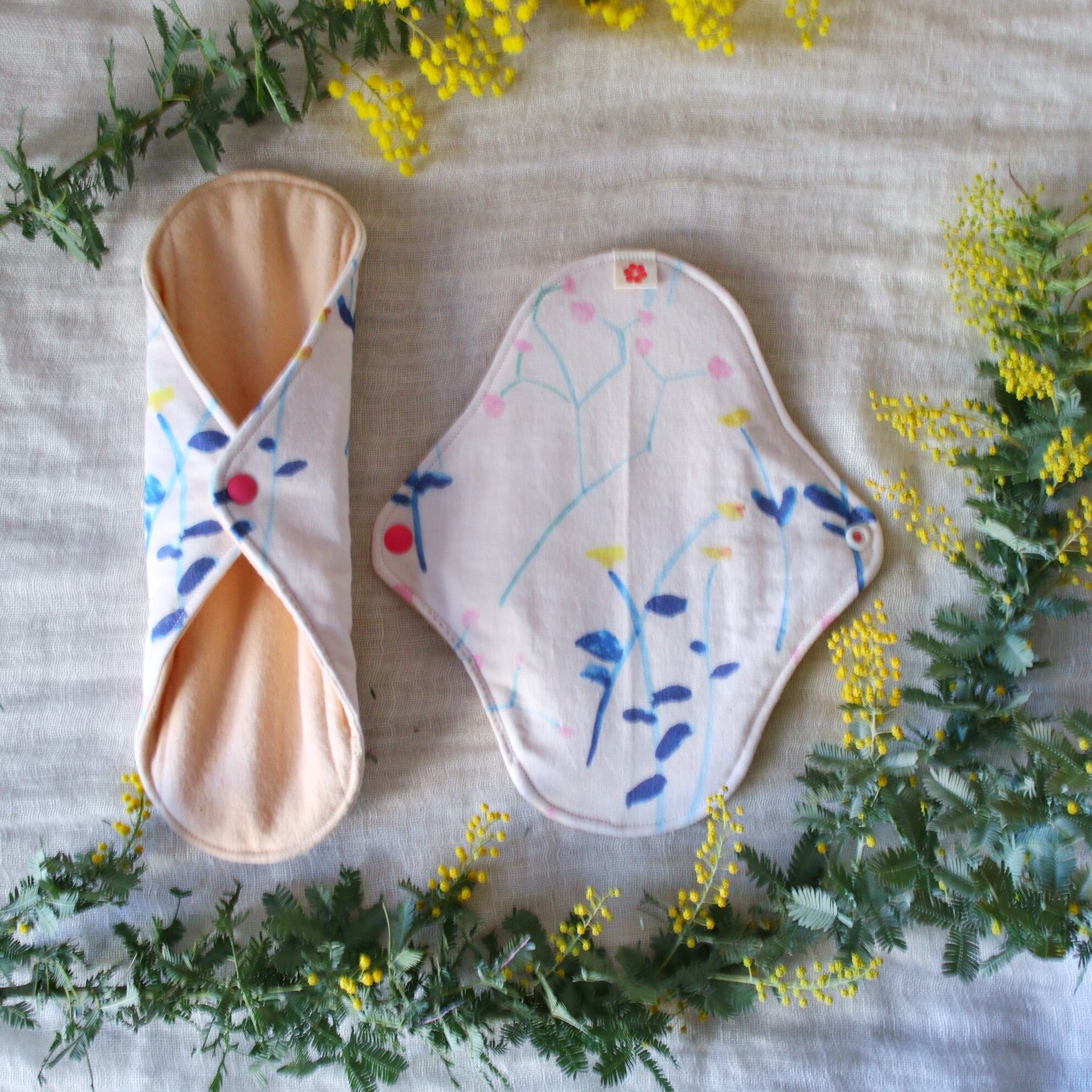 布ナプキン 多い日26cm 防水布 草木染めネル watercolor flowers