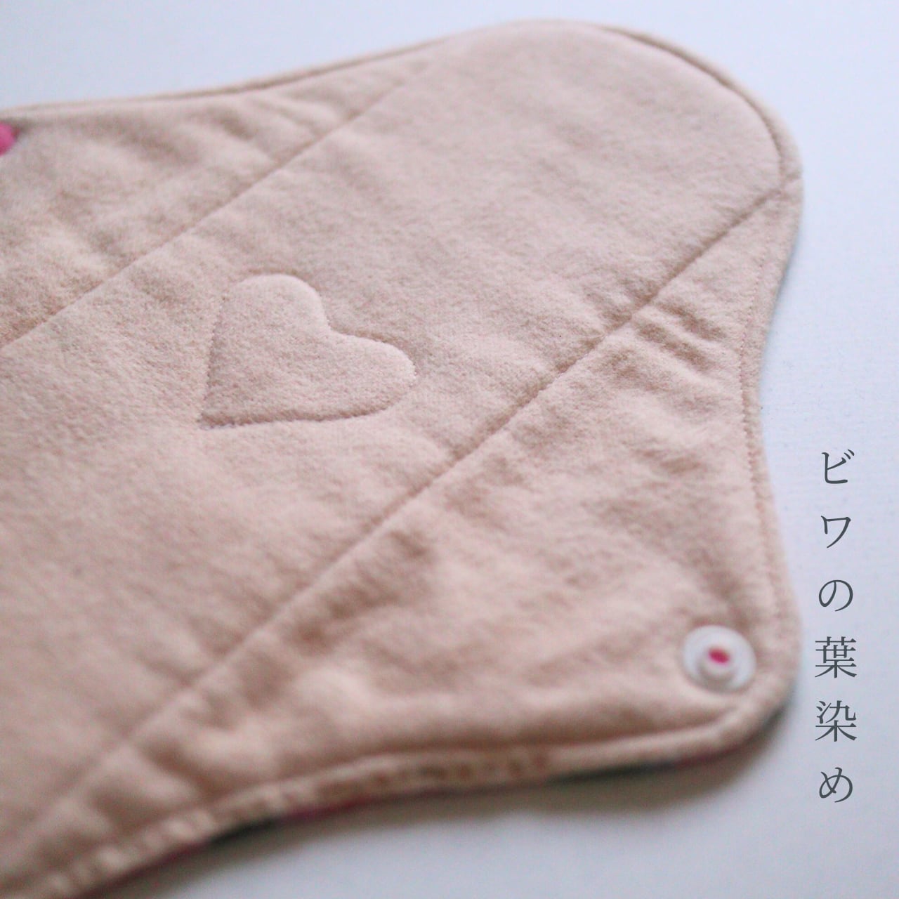 肌に当たる面は、無漂白ネルをビワの葉で染めました。