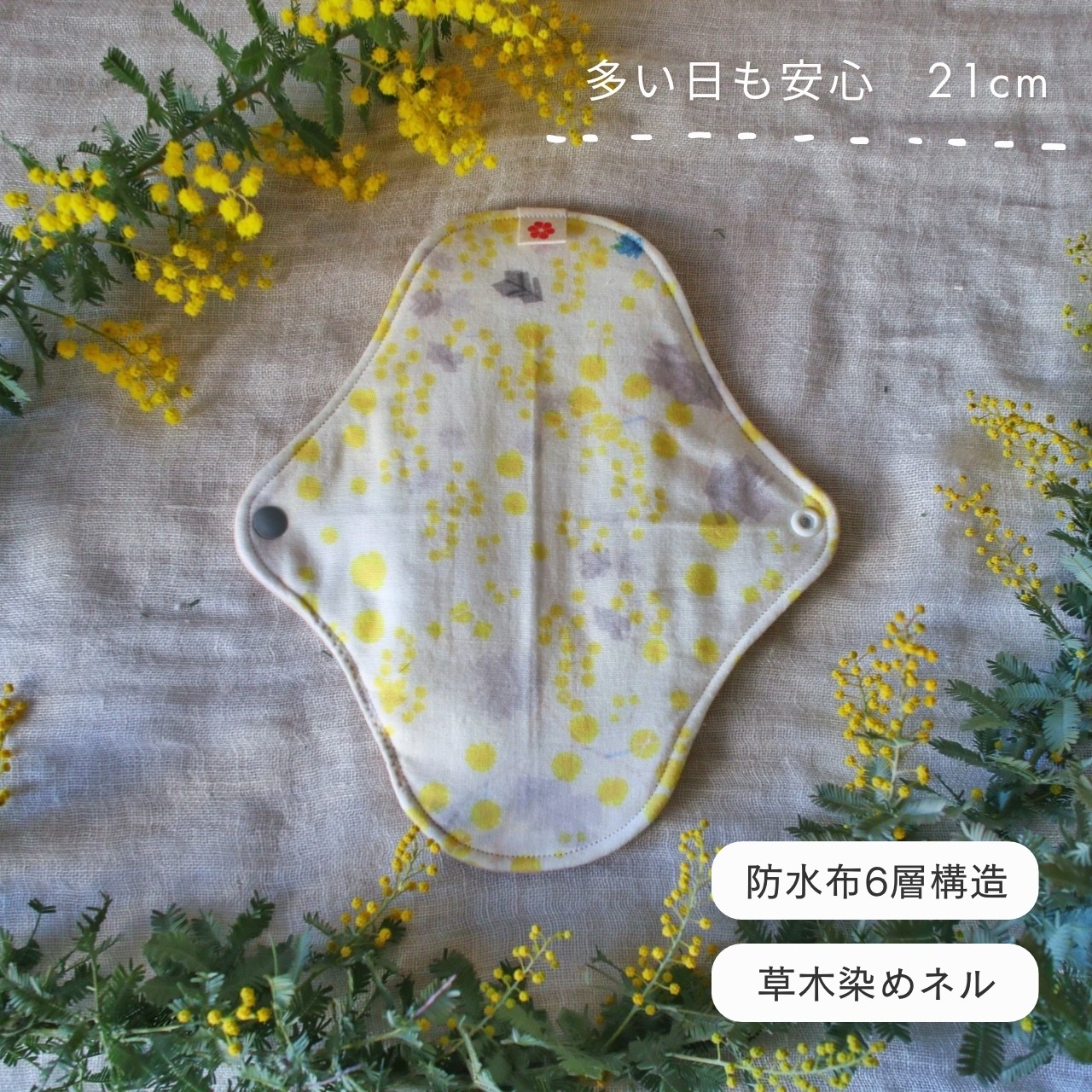 布ナプキン 多い日 21cm 防水布 草木染めネル mimosa